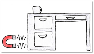 Open the locked desk drawer using a magnet from white board.
